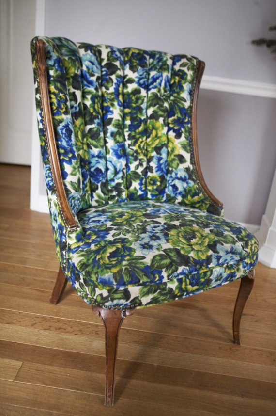 Hollywood Regency style high back upholstered chair, great fresh but retro upholstery too! The Vintage Supply Co., $250.